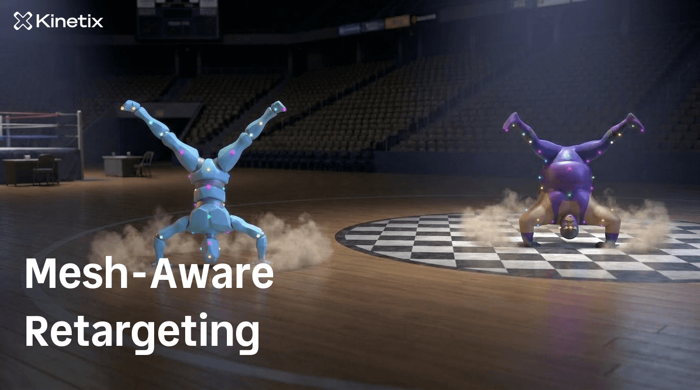 But the transformation does not stop at traditional pipelines. A new generation of animation workflows is emerging, driven by generative AI. Gaming studios, live avatar platforms, robotics pipelines, and synthetic data generation now consider contact-aware retargeting a foundational requirement. These new pipelines demand a retargeting layer that is precise enough to preserve the physical plausibility of generated motion, and flexible enough to handle any output morphology. Mesh-aware retargeting is not an improvement to these pipelines. It is a foundational step towards enabling them.